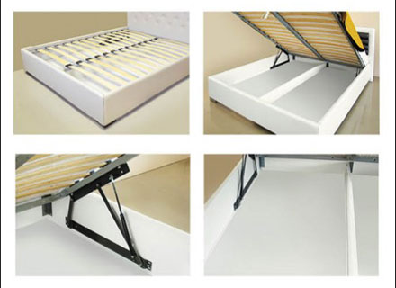 Кровать изготавливается как из эластичной экокожи на тканевой основе, так и существует возможность изготовления из однотонных тканей флоковой, велюровой и бархатной основах, и декорирована пуговицами диаметром 25 мм. По вашему желанию кровать можно оснастить двумя газовыми амортизаторами для подъема ортопедического основания. Кровать с подъемным механизмом позволяет размещать определенное количество вещей и тем самым значительно облегчает проблему, связанную с хранением белья и экономией площади вашей спальни. Дополнительно к кровати можно приобрести на выбор светодиодную подсветку (эко - синяя или меняющаяся регулируемая с пульта управления).