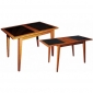 Рамка столешницы обеденного стола изготовлена из массива дерева гевеи. В центре коричневое каленое стекло.