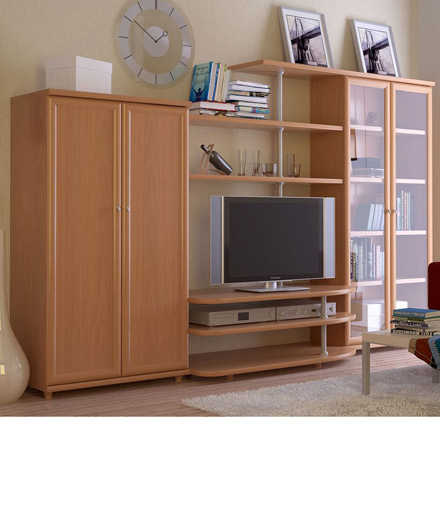 Гостиная «Милан 5» Вся гостиная мебель сделана в модном современном стиле, который на сегодня становится все более популярным на российском рынке. Особенность модульной гостиной - радиусные элементы. Эта современная мебель отлично подходит и для обустройства помещений с небольшой площадью. Матовое стекло, бежевые тона зрительно увеличивают пространство комнаты. Стойка под ТВ «Милан-5» Цвет: бук, венге Материал: ламинированная ДСП Габариты (д/в/ш): 2800 x 1730 x 560мм Производитель: Россия Цена: 16 850 руб.