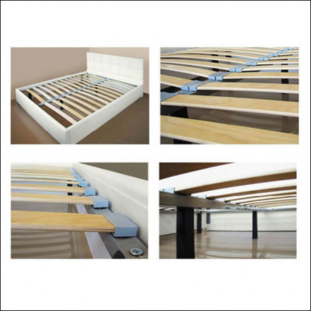 Мягкая кровать может выполняться из эластичного кожзаменителя на тканевой основе и из однотонных тканей на флоковой, велюровой и бархатной основах. Имеет съёмные чехлы с царги кровати. Каркас изготовлен из бруса древесины сосны (ГОСТ 8486-86), фанеры толщиной 12 и 15 мм, древесноволокнистой плиты, кортона мебельного. Мягкие элементы оклеиваются поролоном. Спальное место: 140 и 140(р) - 140х200 см; 160 и 160(р) - 160х200 см; 180 и 180(р) - 180х200 см; 140, 160, 180 - кровати без подъёмного механизма, с ортопедическим основанием, съемными чехлами царги; 140(р), 160(р), 180(р) - с подъёмным механизмом, коробом для белья, ортопедическим основанием, съемными чехлами царги.
