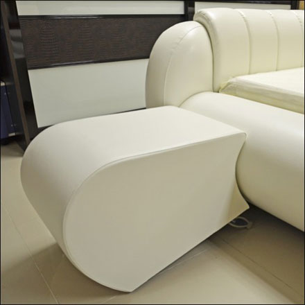 Стоимость (160×200) от 31 190 руб. Мягкая кровать может выполняться только из экокожи (желательно с глянцевым эффектом). Каркас изготовлен из реек древесины сосны (ГОСТ 8486-86), фанеры толщиной 3, 12 и 15 мм, древесноволокнистой плиты и ДСП. Короб кровати оклеивается поролоном толщиной 20 мм, плотностью 2536, а спинка кровати поролоном толщиной 40 мм, плотностью 2536, соответствующих международному стандарту ISO 3386 DIN 5377. Чехлы изготавливаются экокожи в различной ценовой категории и цветовой гамме, соответствующих ГОСТ 24220-80.