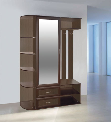 Габаритные размеры: -ширина: 135 см -глубина: 44 см -высота: 213 см Цвета ЛДСП: однотонный: венге, дуб млечный. Комбинация: каркас одного цвета (венге или дуб млечный), а двери другого (венге или дуб млечный). Кожзам в тон ЛДСП двери. Вариант исполнения: правый или левый (по установке двери)